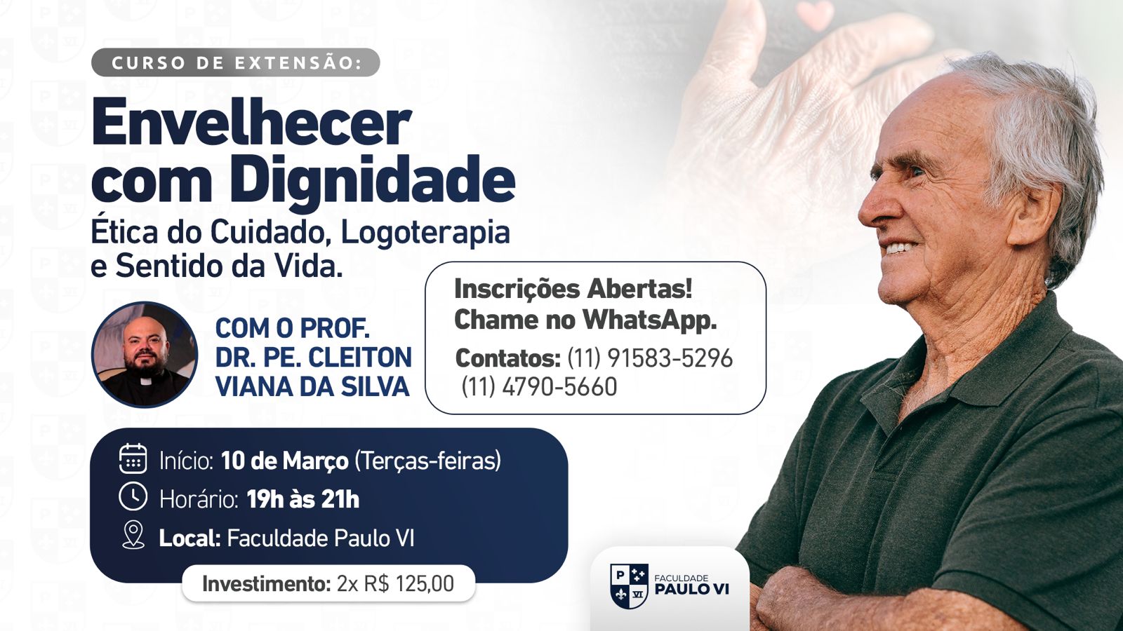 É justamente para aprofundar essa abordagem que acontecerá o curso presencial “Envelhecimento, ética do cuidado e sentido da vida” na Faculdade Paulo VI, às terças-feiras, das 19h às 21h30.